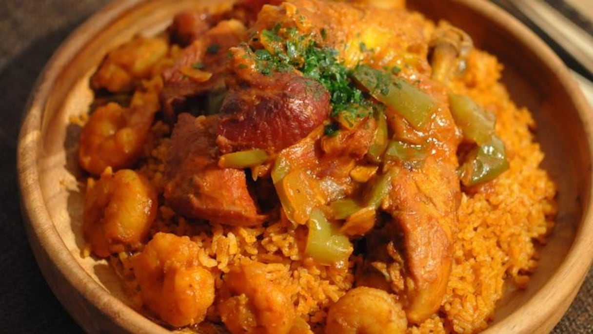 Le mot "jollof" est tiré de "wollof", la langue parlée au Sénégal où le plat est également très populaire. On le retrouve d'ailleurs à travers toute l'Afrique de l'Ouest.