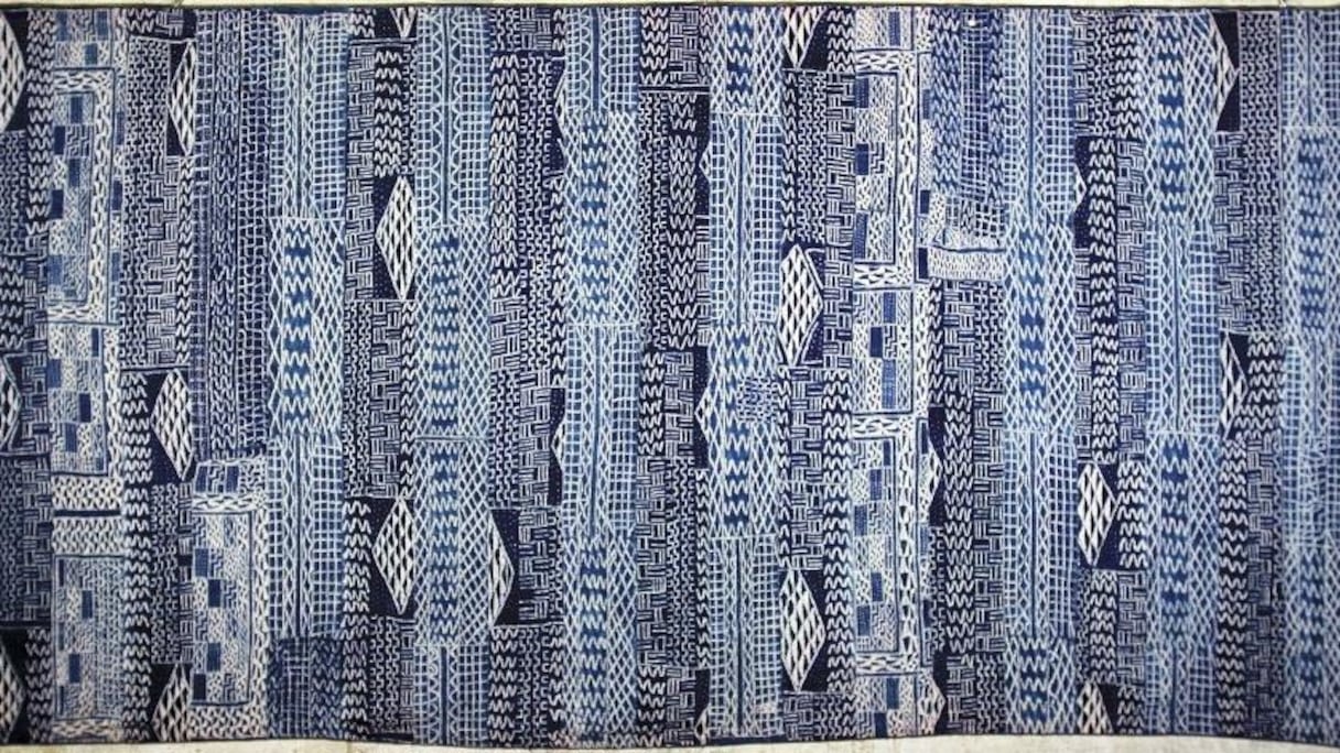 «Les tissus Ndop des Bamilékés, habitants de la savane camerounaise, en Afrique centrale, sont faits de coton tissé en bandes étroites. Si cette première étape est réalisée dans le nord du pays, non loin de Garoua, ce sont ensuite les femmes bamilékées qui appliquent à l’aide de fil de raphia les motifs qui seront teints en réserve à l’indigo.