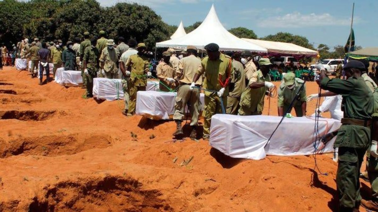 Les représentants de plusieurs confessions religieuses se sont relayés au micro dimanche pour de brèves prières et des gerbes de fleurs ont été disposées devant les cercueils. Les drapeaux, comme à travers tout le pays, étaient en berne, quatre jours de deuil national ayant été décrétés vendredi par le président John Magufuli.