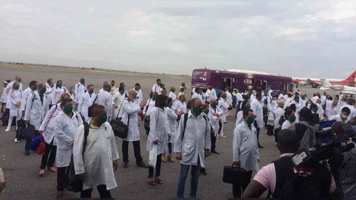 A leur descente d’un avion affrété par la compagnie nationale TAAG Angolan Airlines, les médecins cubains ont été accueillis par les autorités angolaises et l’ambassadrice de Cuba en Angola.