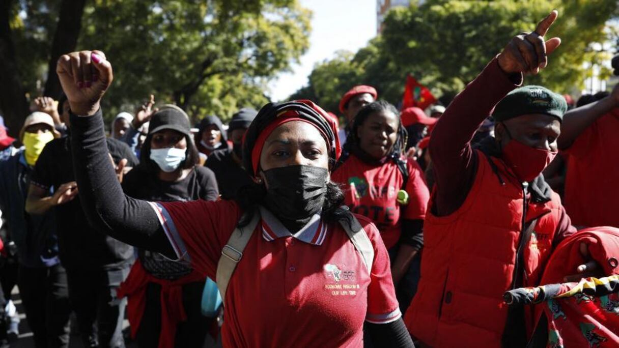 "Notre demande est simple: donnez des vaccins à nos concitoyens, nous voulons ouvrir notre économie", a déclaré Julius Malema, le leader de l'EFF, devant plus de 2.500 partisans.