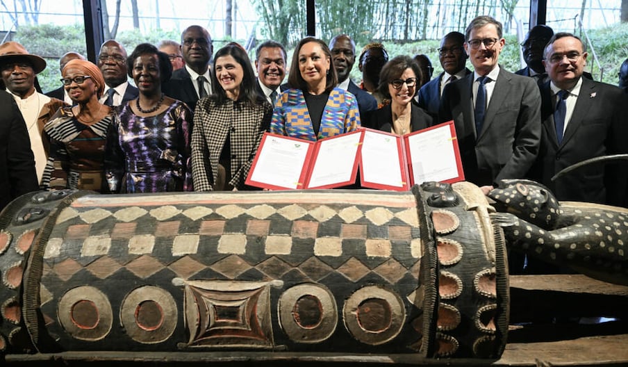 Le tambour parleur «Djidji Ayôkwé» officiellement restitué par la France à la Côte d’Ivoire
