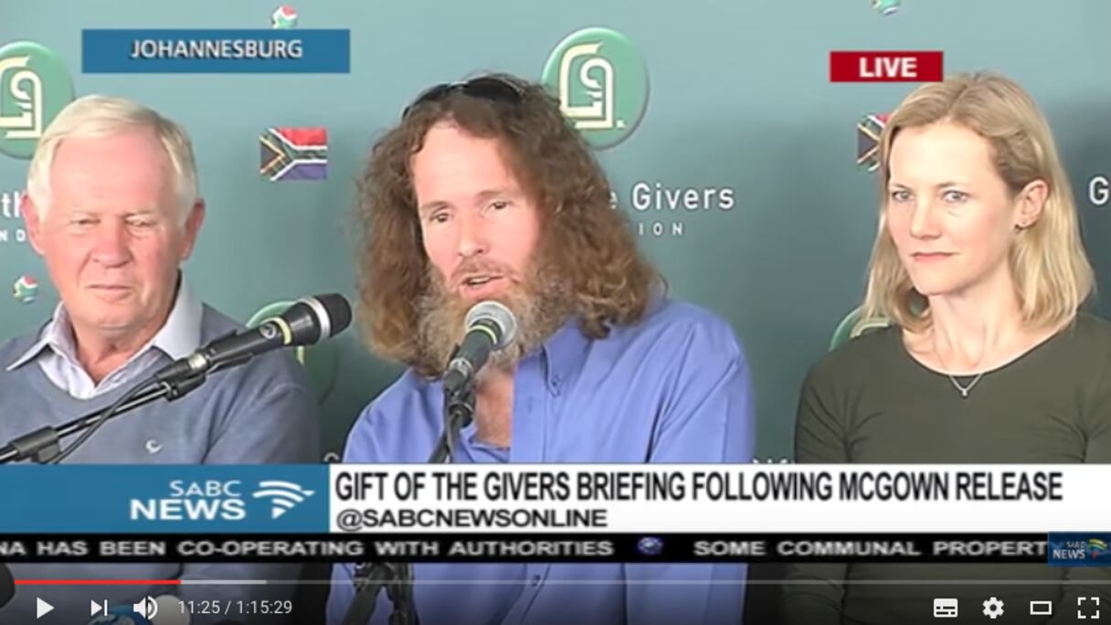 "On a été très bien traités. J'avais des habits, de la nourriture. Quand j'étais malade, ils (mes ravisseurs) me donnaient des médicaments, des médicaments de base mais des médicaments", a déclaré Stephen McGown, qui s'exprimait pour la première fois depuis sa libération fin juillet, à l'occasion d'une conférence de presse à Johannesburg.