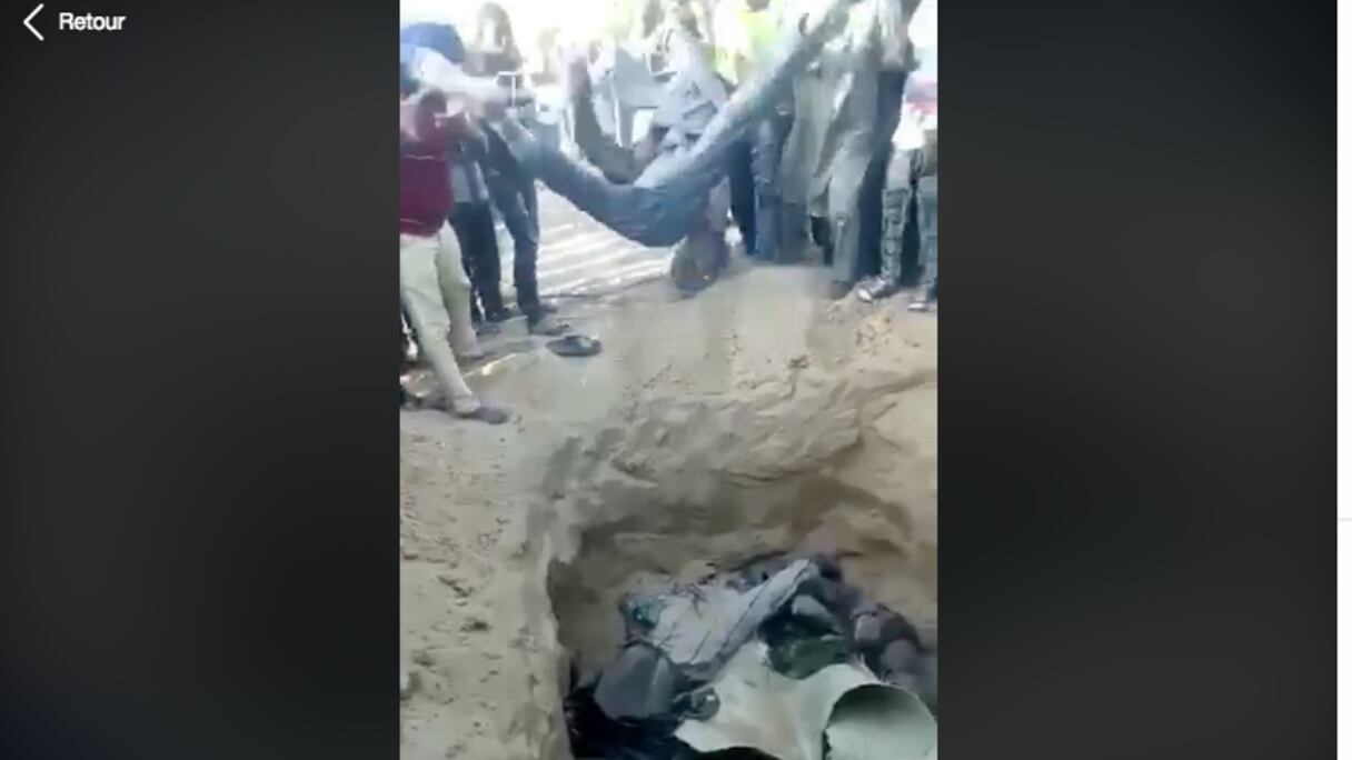 Dans la première vidéo (visible ici), des hommes en uniformes armés de machettes donnent des coups à des personnes couchées à même le sol. Difficile de savoir dans quelles circonstances ces faits se sont produits. Cependant, sur les réseaux sociaux, les explications données par la plupart des personnes ayant posté la vidéo ne laissent place à aucun doute.