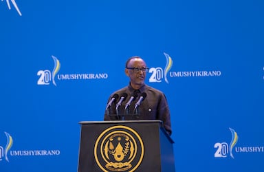 Le président Paul Kagame prononçant son discours à l'ouverture de al 20e édition de Umushyikirano, un espace inédit de reddition des comptes, où les citoyens rwandais interpellent directement leurs dirigeants.