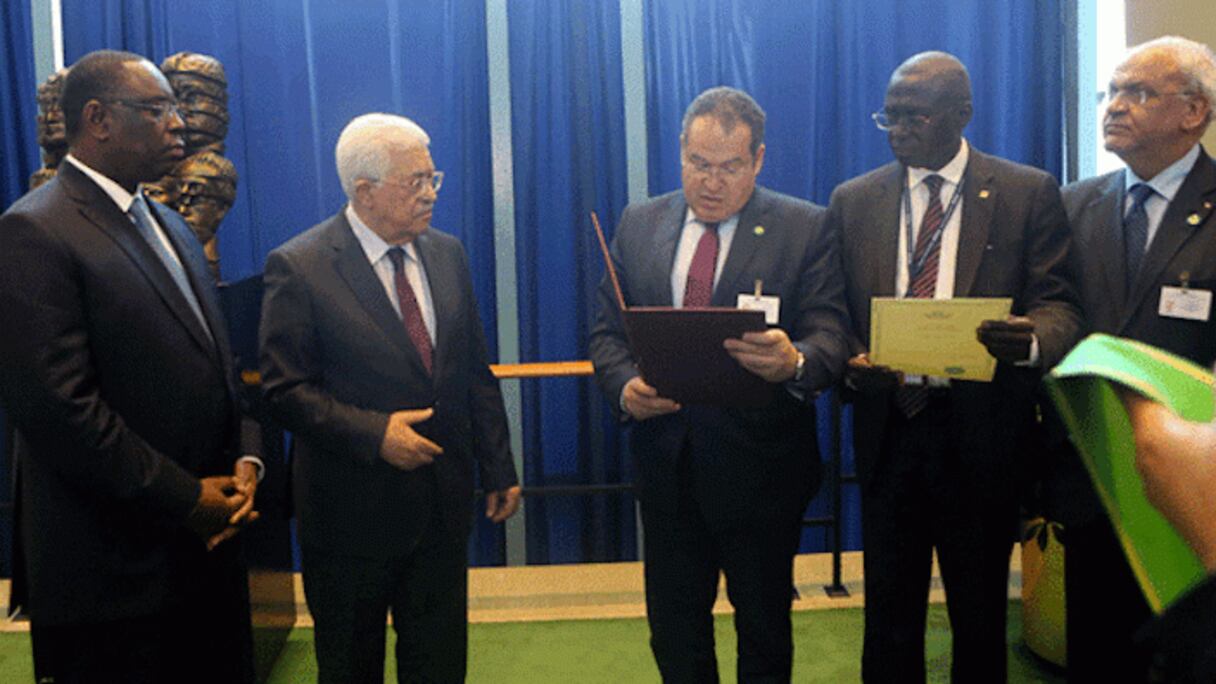 Cette médaille, la plus haute distinction de l'Etat de Palestine, "magnifie les nombreux efforts du président Macky Sall en soutien de la cause palestinienne et en défense des droits inaliénables du peuple palestinien", rapporte mardi la presse locale.Cette distinction remise au président sénégalais en marge de la signature, vendredi dernier, de l'accord de Paris sur le climat, constitue également "un signe de gratitude de l'Etat de Palestine envers le peuple frère du Sénégal pour son engagement constant en faveur de la cause palestinienne", poursuit la même source.En janvier dernier, le Sénégal a réitéré, lors d'un débat public au Conseil de sécurité de l'ONU sur la situation au Moyen-Orient, son soutien au gouvernement palestinien dans sa stratégie visant à intégrer les organisations et conventions internationales pour "une paix définitive avec Israël, sur la base du Droit international et suivant une approche pacifique".Le Sénégal qui a officiellement entamé, début janvier 2016, son mandat en qualité de membre non permanent du Conseil de sécurité, préside le Comité pour l'exercice des droits inaliénables du peuple palestinien.