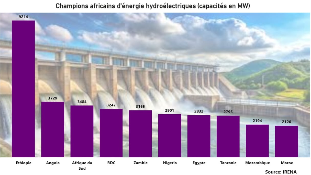Le champion de l’hydroélectricité en Afrique est l’Éthiopie avec une capacité installée s’établissant à 9.214 MW, soit environ 19% des capacités installées au niveau du continent.