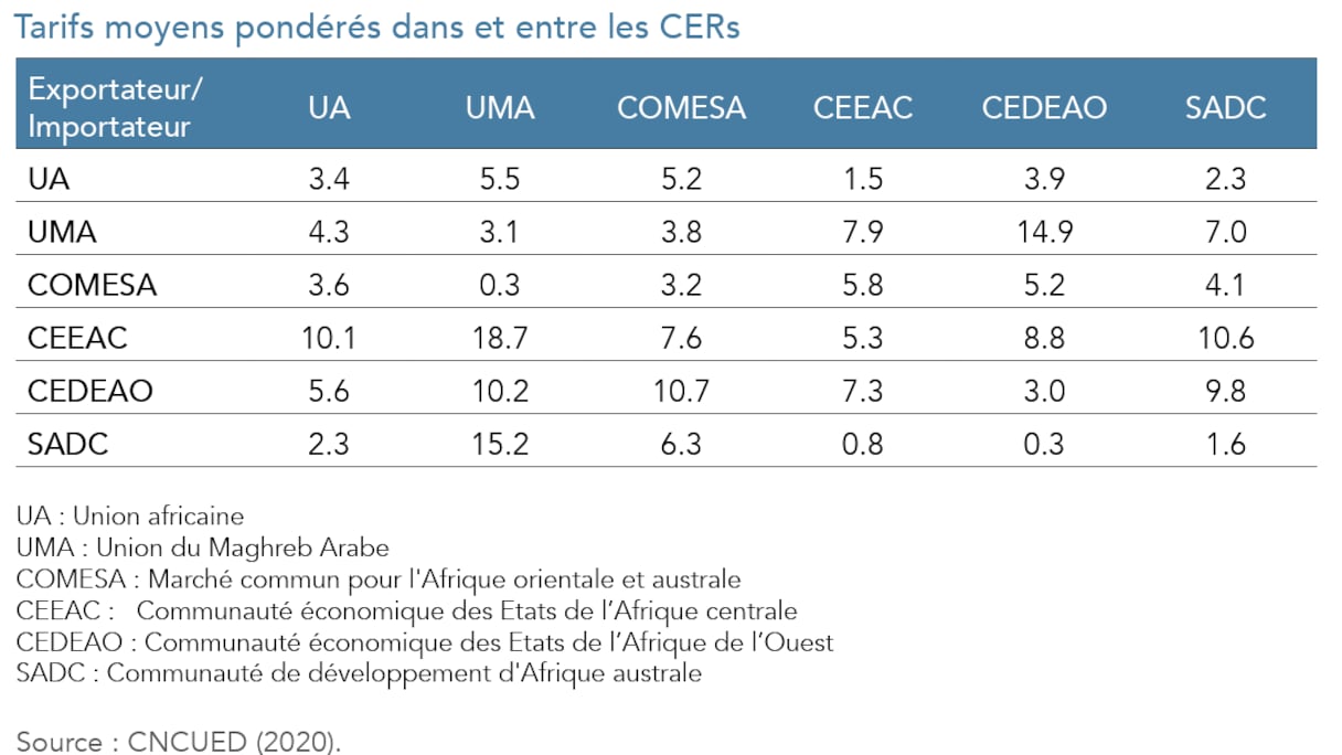 Tarifs moyens pondérés dans et entre les communautés économiques régionales