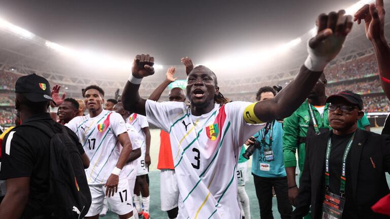 L'équipe de Guinée Conakry célèbre sa victoire contre la Guinée équatoriale, lors de la CAN en 2023.