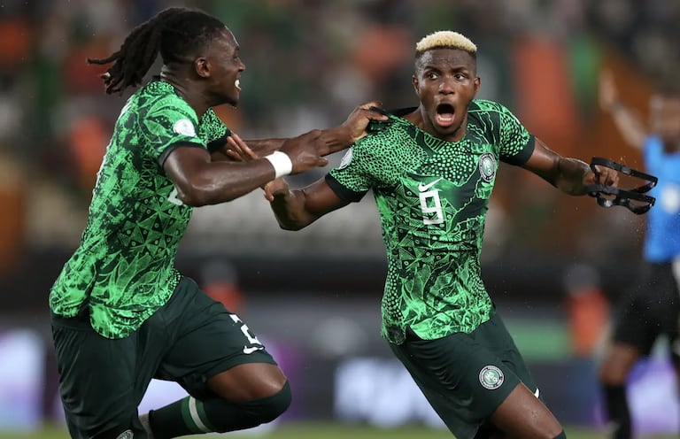 Victor Osimhen célèbre son but lors de la Coupe d’Afrique des Nations entre le Nigeria et l’Afrique du Sud.
