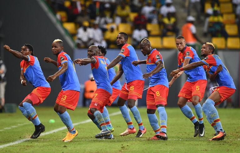 Les joueurs de la République démocratique du Congo célèbrent leur troisième but en dansant le Fimbu.
