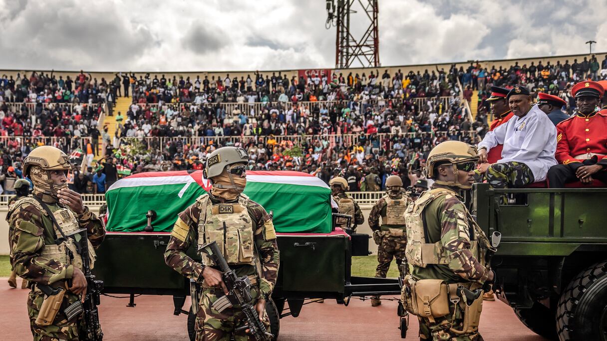 Vendredi, le cercueil de Raila Odinga, recouvert d’un drapeau kényan, a été tracté par un véhicule militaire dans un plus petit stade de Nairobi, où la cérémonie officielle s’est déroulée.