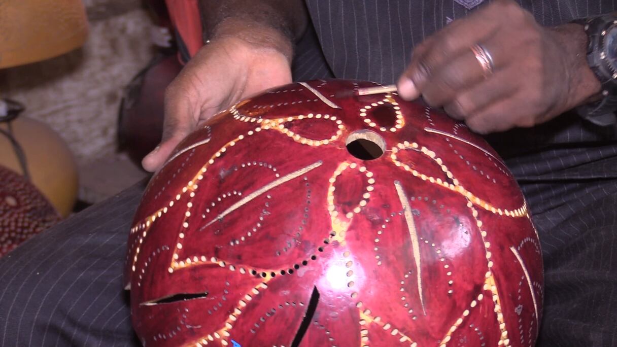 Jadis symbole d’hospitalité, la calebasse brille désormais de mille lumières, grâce à l’ingéniosité d’Ali Narey. De son art décoratif, des objets artistiques et utilitaires voient le jour et sa lumière.