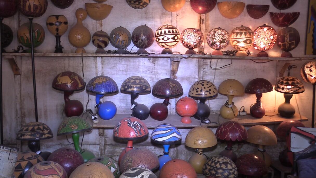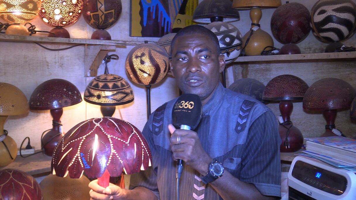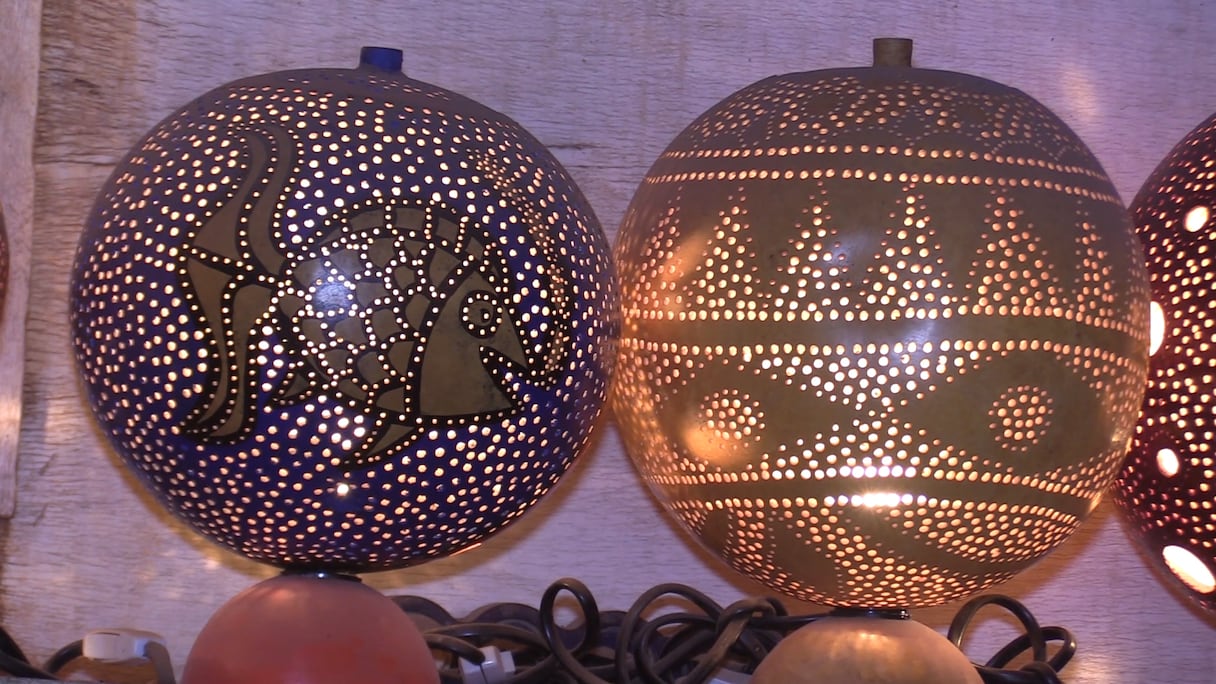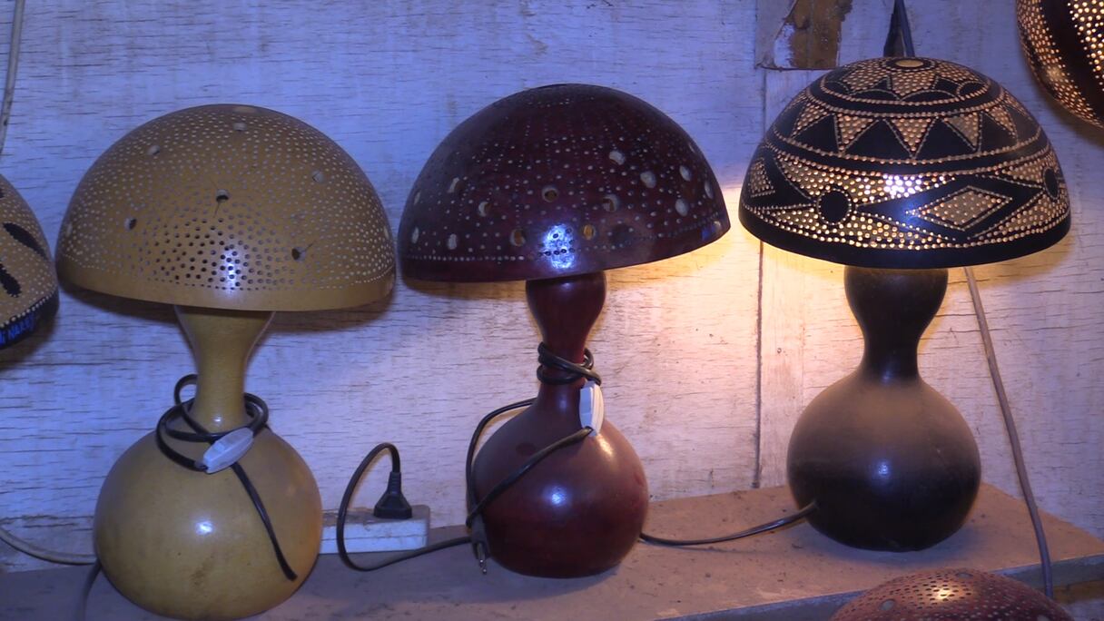 Abat-jour, lampes, divers articles utilitaires... autant d’œuvres conçues et fabriquées par Ali Narey à base de calebasse, cette cousine de la courgette.