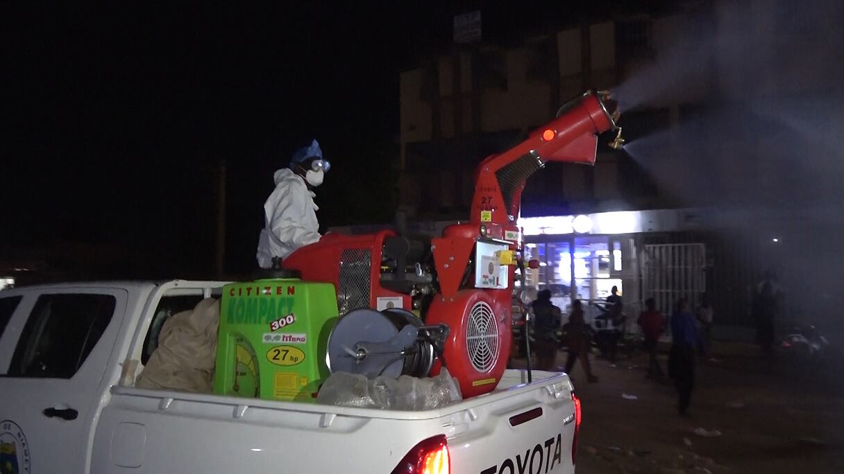 Il est environ 21h30, et c’est une longue soirée qui attend Mourtala Mohamed et son équipe. A bord de leur véhicule de service équipé d’un pulvérisateur, il passeront cette nuit à disperser un pesticide antimoustique à travers Niamey.