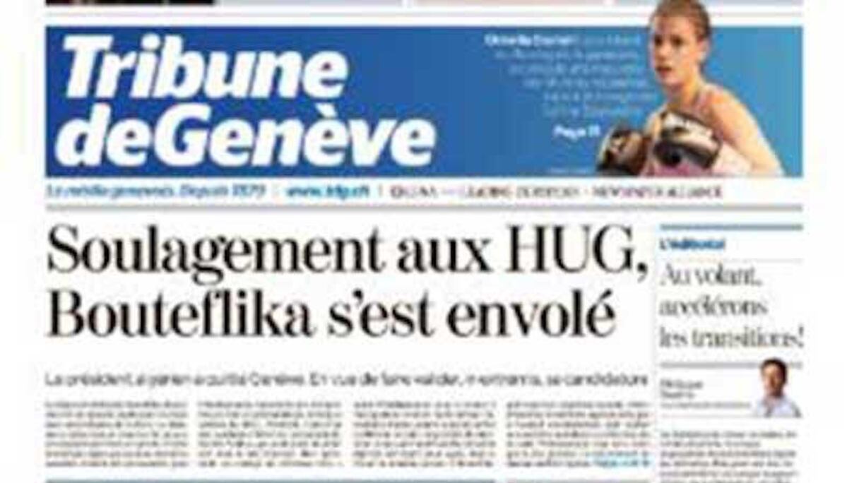 C'est avec un titre révélateur que le premier quotidien suisse francophone a barré sa Une: "Soulagement aux HUG, Bouteflika s'est envolé".