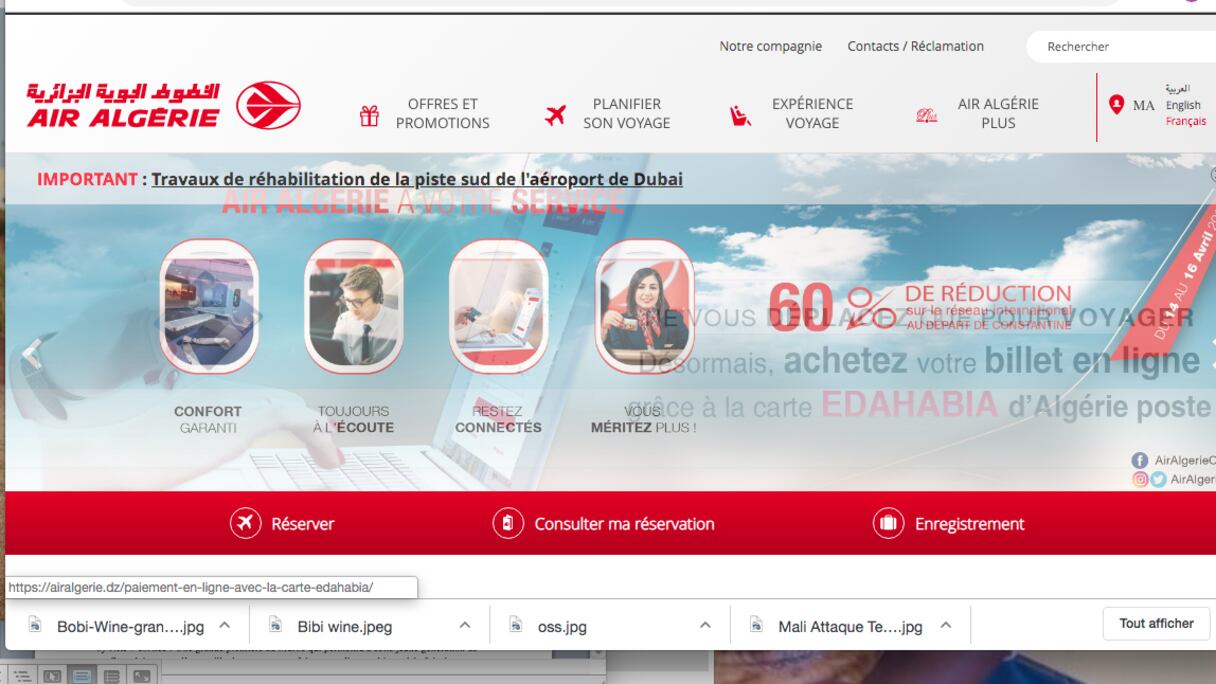 Air Algérie a été victime d'attaques menées par des hackers non identifiés, à travers son site de réservation et de vente de billets en ligne. Une plainte sera déposée auprès des autorités judiciaires contre les auteurs de ces intrusions informatiques qui ont fini par rendre non-opérationnel le site.