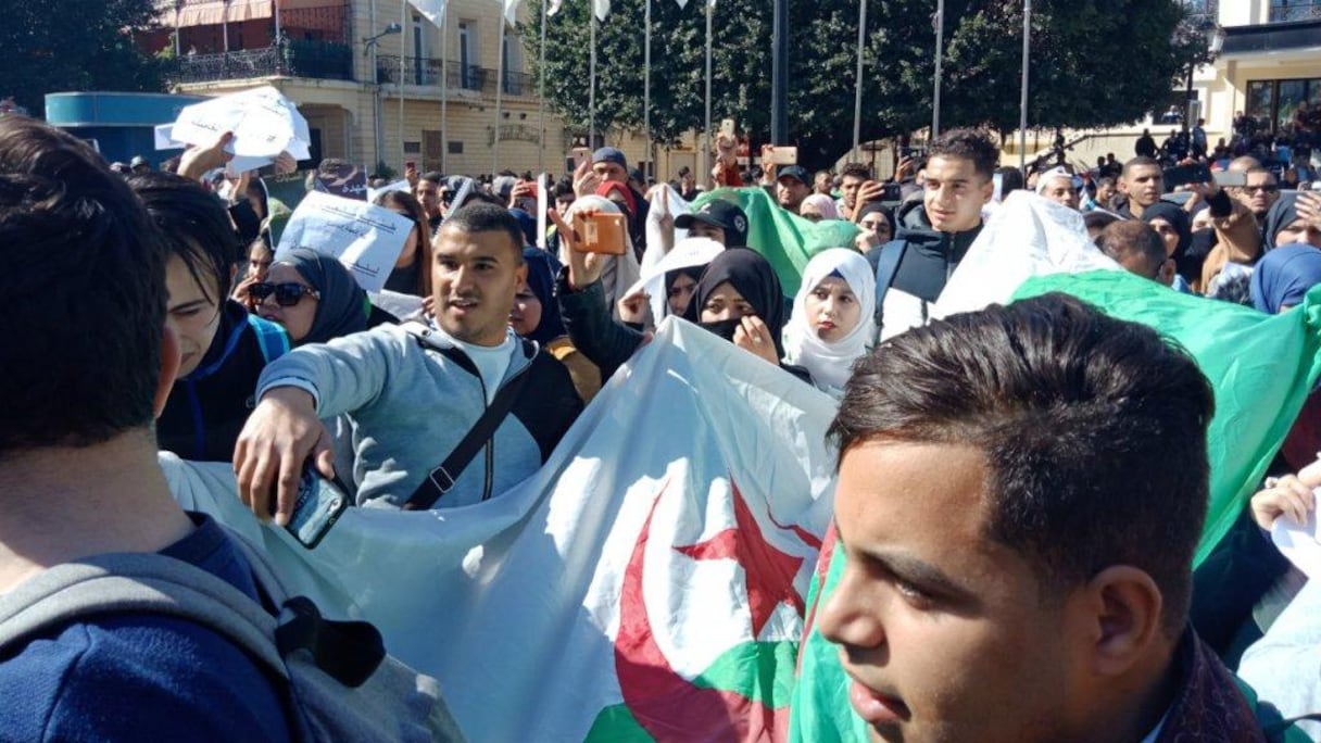 "Ou c'est nous, ou c'est vous; gouvernement dégage!", scandent en choeur les étudiants, la plupart parés du drapeau national. Dans le carré de tête, des étudiants en architecture et en génie civil, portant des casques de chantier blancs et jaunes, brandissent une banderole sur laquelle on peut lire "Bâtissons une Algérie nouvelle".