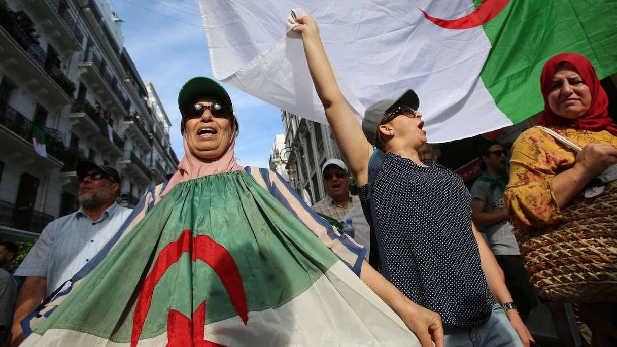 Entre les youyous des étudiantes, nombreuses à battre le pavé ce 22 octobre, on relèvee les mêmes slogans que les semaines précédentes. "Dawla madania, machi askaria" (Etat civil et non militaire), crient-ils en choeur. "Djazaïr horra, demokratiya" (l'Algérie libre, démocratique), enchaîne le même groupe, rythmant leurs slogans de battements de mains.