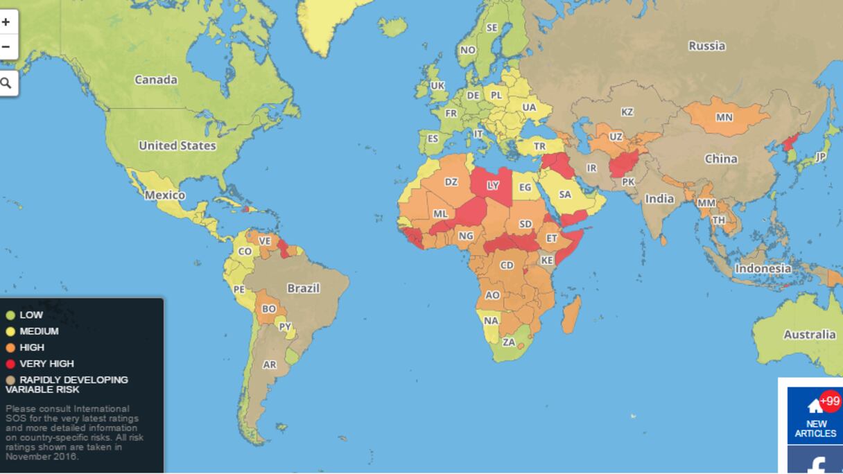 Kiosque le360 Afrique: L’Algérie est un pays à haut risque. C’est ce qui ressort de la publication, ce mardi 15 novembre, de l’édition 2017 la Carte mondiale des risques éditée par le cabinet Control Risks, spécialisé dans le conseil sur la sécurité dans le monde, et l’organisme de santé SOS International.