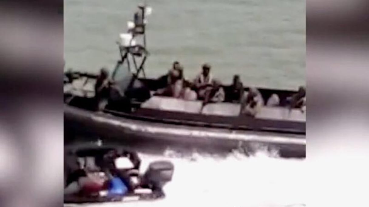 On voit également sur ces images le passeur tenter de s’enfuir avant de se retrouver pris en tenaille entre deux bateaux des gardes-côtes qui lui tirent dessus, à quatre reprises au moins, sans l’atteindre. Il finira par être appréhender après que son embarcation a été percutée par l’un des bateaux.