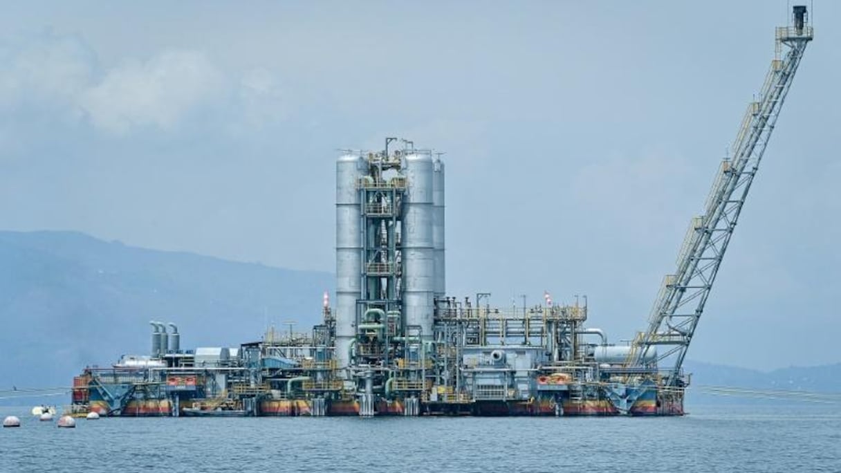 Pour accéder à cette centrale électrique unique au monde, il faut grimper dans un hors-bord, qui en une vingtaine de minutes amène à la plateforme off-shore, un enchevêtrement compact de bouées et de tuyaux, haut comme un immeuble de plusieurs étages.