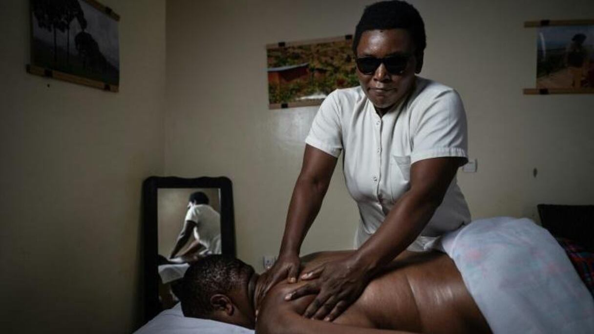 Depuis 2017, cette femme de 43 ans a formé des dizaines de femmes malvoyantes - et quelques hommes - à l'art du massage afin de créer des emplois pour cette communauté victime de discrimination au Rwanda.