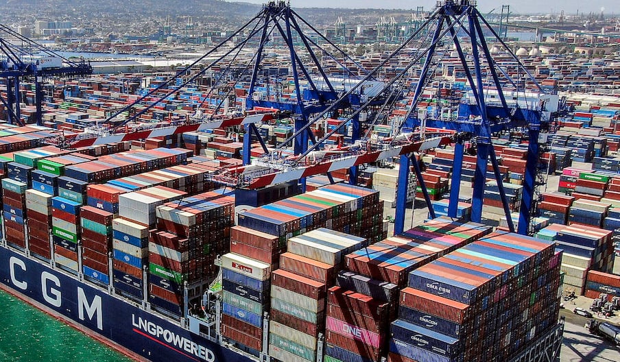 Un porte-conteneurs du groupe CMA CGM dans un port.