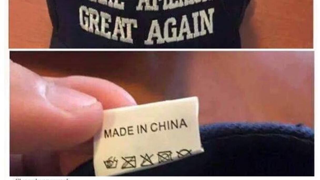 En effet, les milliers de casquettes que portent les partisans de Trump sont bel et bien fabriquées en Chine. Alors que le leitmotiv du candidat républicain est justement "make America great again", qui peut se traduire par "rendons à l'Amérique sa grandeur". Tout au long de campagne, il n'a cessé d'appeler à lutter contre la délocalisation des emplois et à tenir un discours populiste pour séduire l'électorat conservateur.