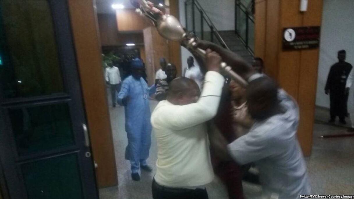 "Aujourd'hui, des voyous se sont emparés du symbole de l'autorité de la chambre haute du Parlement, la masse", a dit le responsable du Sénat chargé des médias et affaires publiques, Aliyu Sabi Abdullahi.