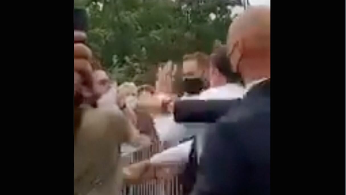 Sur l'extrait diffusé sur Twitter, M. Macron est vu s'approchant d'un groupe de personnes massées derrière des barrières, puis échanger brièvement avec un homme. Saisissant l'avant-bras du président, l'individu semble lui porter ensuite un coup sur la joue, l'entourage de Macron évoquant une "tentative de gifle". Le chef de l'Etat a poursuivi sa visite, a indiqué l'Elysée.