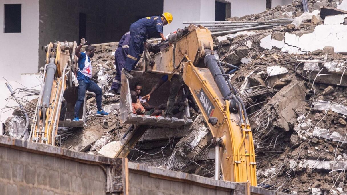 Des dizaines d'ouvriers se trouvaient sur le chantier situé sur une des avenues les plus chics de Lagos, dans le quartier huppé d'Ikoyi, lorsque le gratte-ciel s'est effondré lundi après-midi.
