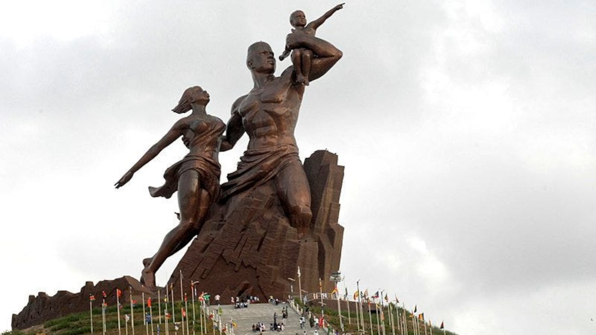 Structure monumentale en bronze réalisée sur la deuxième colline des Mamelles, cette merveille voulue par l’ancien président Abdoulaye Wade et construite par la Corée du Nord, s’élevé sur une colline de haute de 105 mètres. Et avec ses 52 mètres de haut, l’ensemble fait 157 mètres de hauteur.
