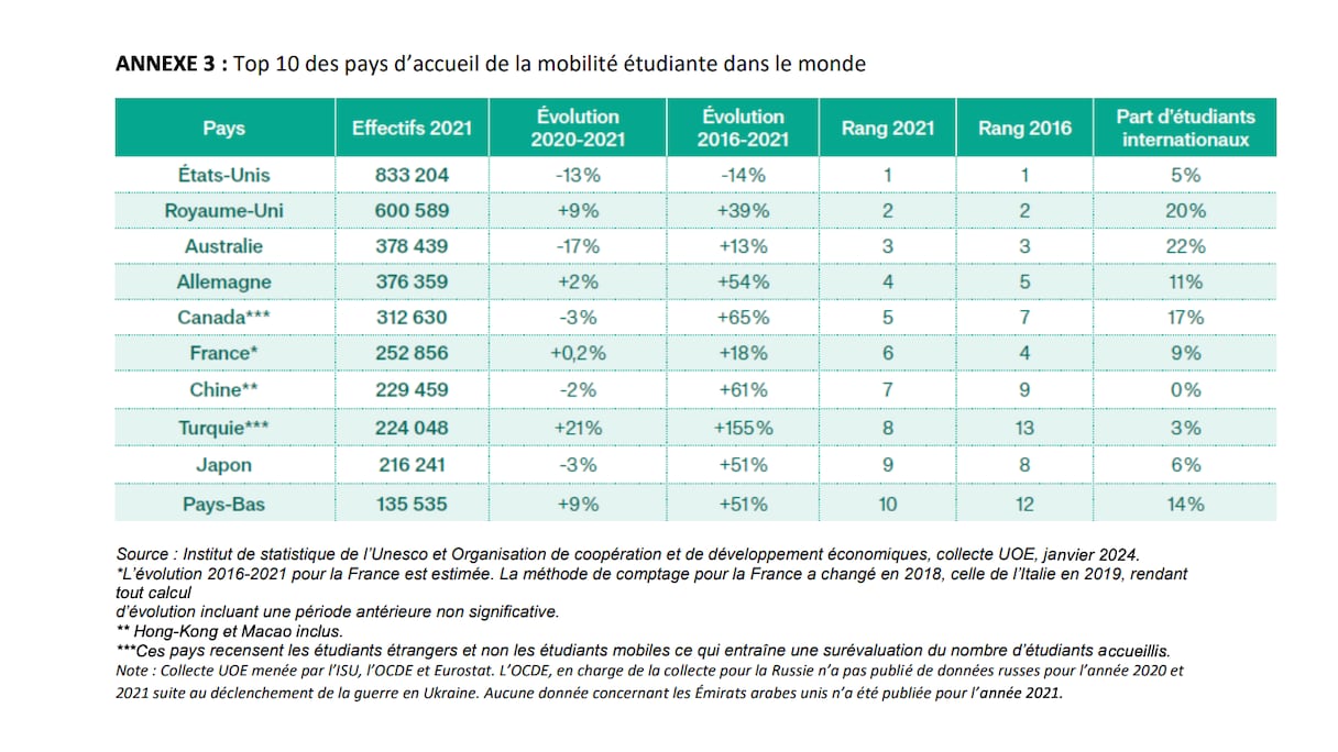 | Pays | Nombre d’étudiants 2022/2023 | Part du total monde | Rang mondial |