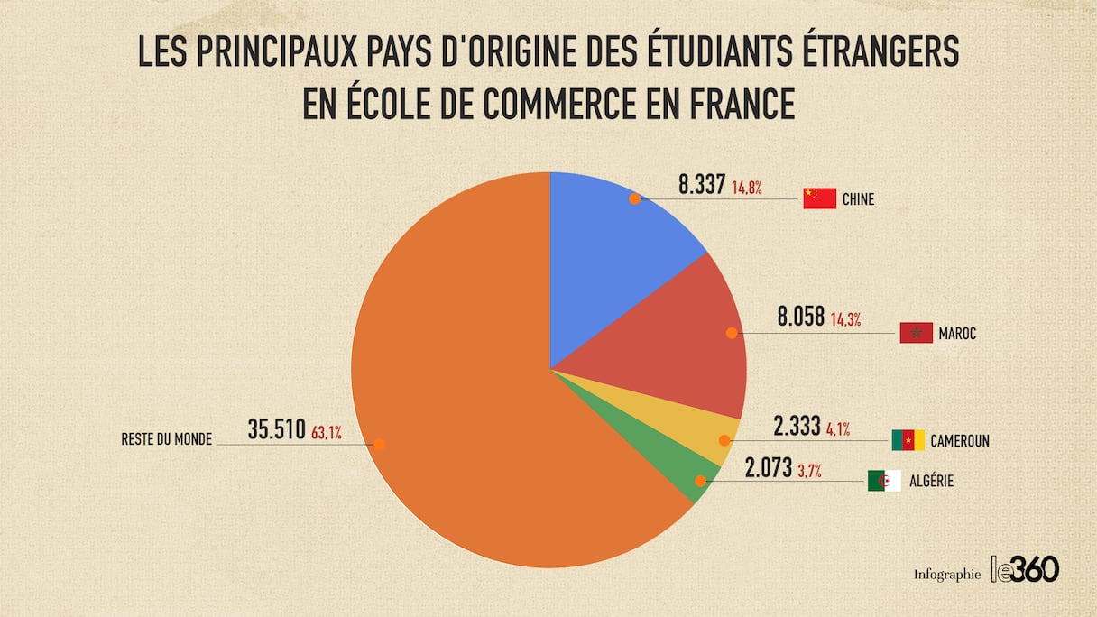 Idem au niveau des écoles françaises de commerce, également parmi les plus réputées au monde, derrière les anglo-saxonnes. A ce titre, si la Chine est la plus représentée au niveau de ces établissements avec 8.337 étudiants, elle est talonnée de près par le Maroc qui en compte 8.058, occupant de très loin le premier rang au niveau du continent africain, avec une part de 14% de tous les étudiants étrangers inscrits dans ces écoles.