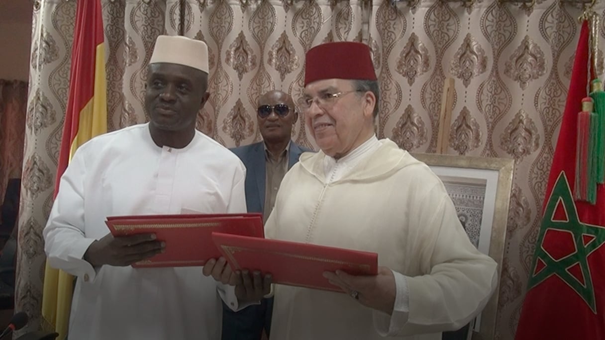 Le secrétaire général de la Fondation Mohammed VI des ouléma africains, Mohamed Rifki, et le ministre secrétaire général des Affaires religieuses de la Guinée, El Hadj Karamo Diawara, ont signé, en présence de l’ambassadeur du Maroc en Guinée, Issam Taib, un protocole portant sur la gestion et le fonctionnement du Complexe Mohammed VI de Conakry.