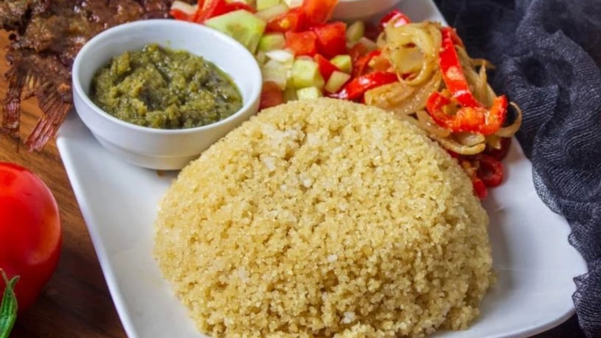 L’attiéké, semoule de manioc légèrement aigre qui accompagne les poissons et les viandes en sauce, est un pilier de l’alimentation quotidienne en Côte d’Ivoire et dans de nombreux pays d’Afrique de l’Ouest.