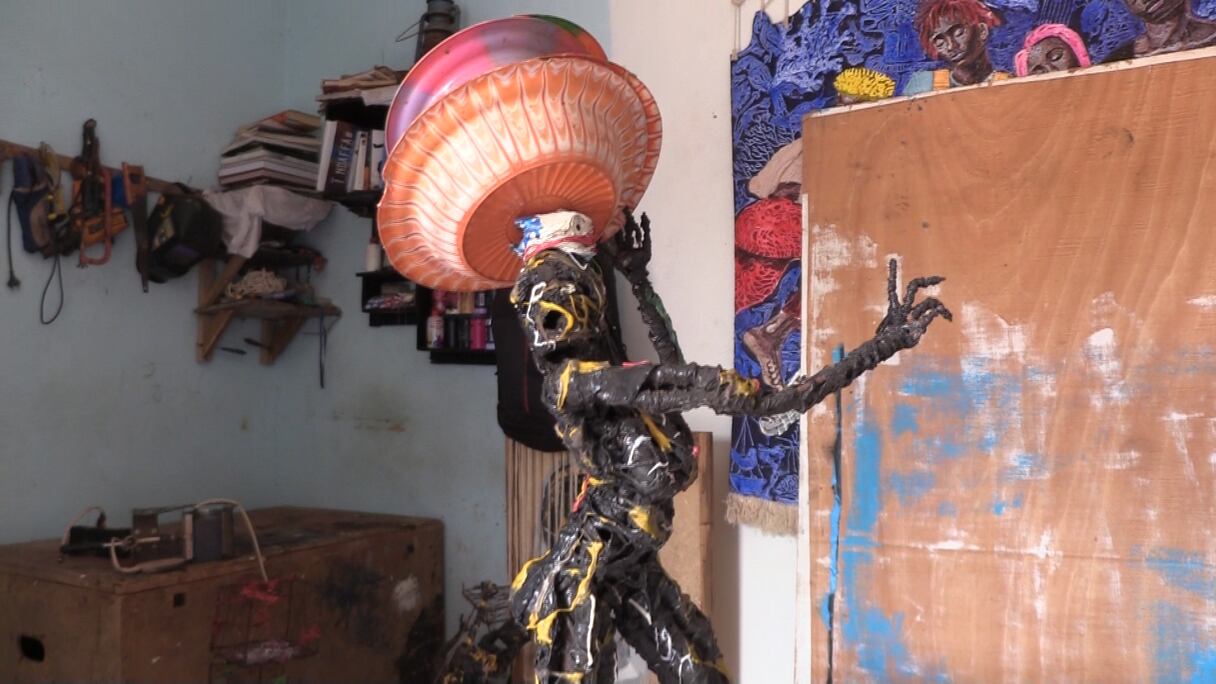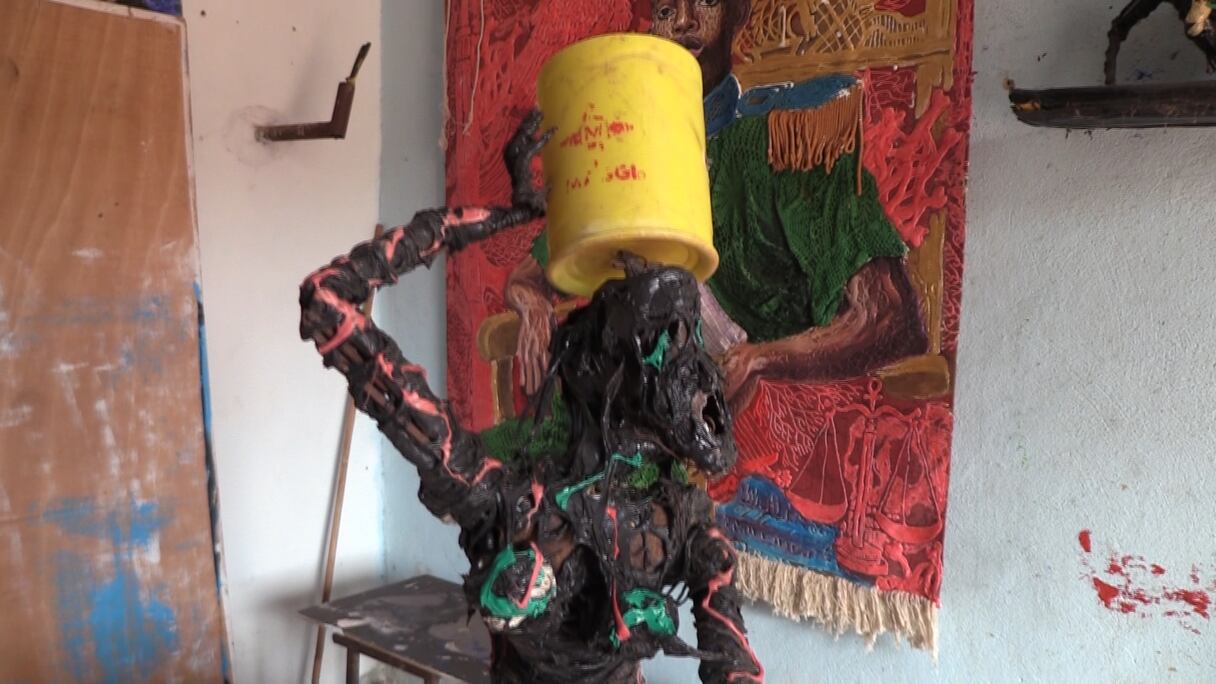 Œuvre d'Ibrahim Bemba Kébé composée de débris recyclés.