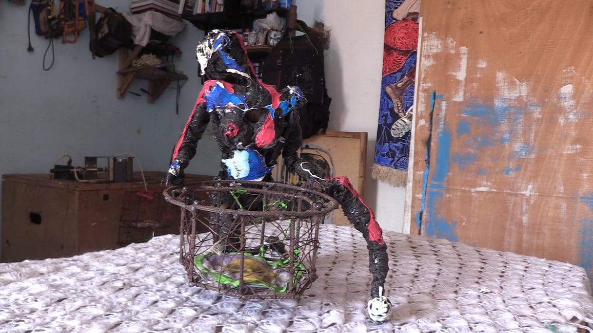 La ville de Bamako regorge de déchets plastiques non biodégradables et électroniques difficiles à recycler qui mettent en péril l’environnement et peuvent même causer des problèmes de santé publique. Dans une démarche de création artistique et citoyenne, Ibrahim Bemba Kébé, artiste pluridisciplinaire qui vit et travaille à Bamako, récupère ce bric-à-brac d’où prendront formes des objets d’art.
