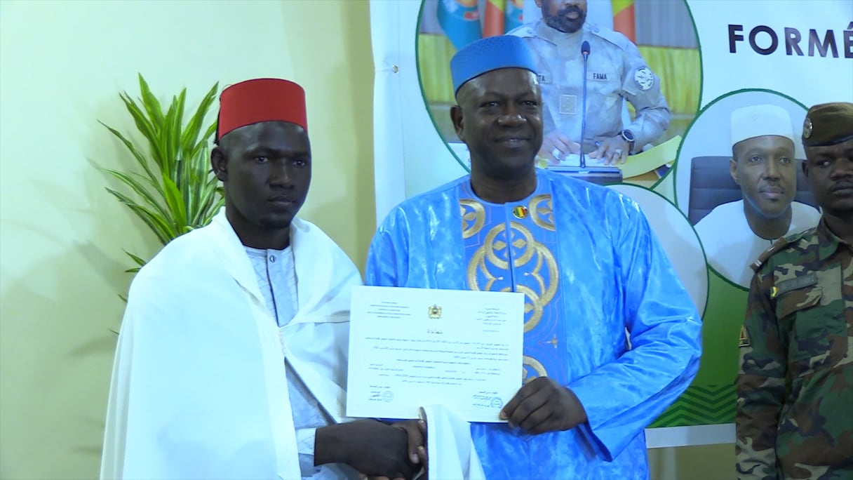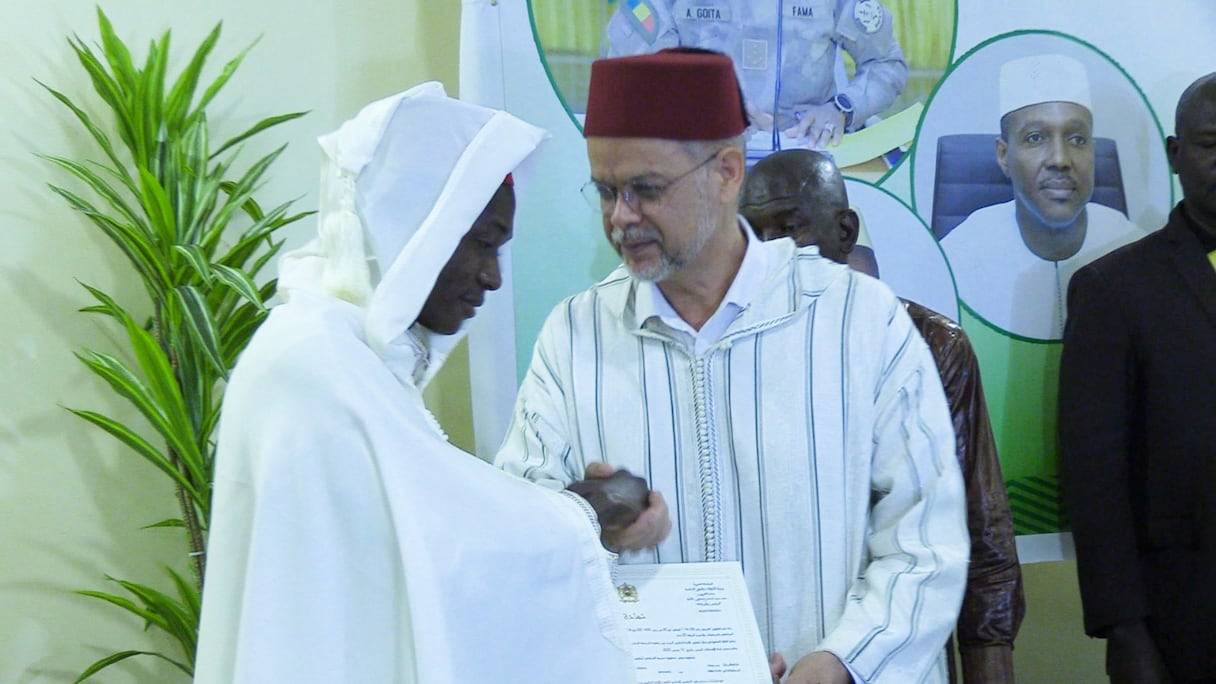 Le ministre des Affaires religieuses, du Culte et des Coutumes, Mahamadou Koné et l’ambassadeur du Royaume du Maroc au Mali, Driss Isbayène, ont pris part, le samedi 3 janvier 2026 à la cérémonie de remise de diplômes aux imams formés à l’Institut Mohammed VI de Formation des Imams, Mourchidines et Mourchidates de Rabat.