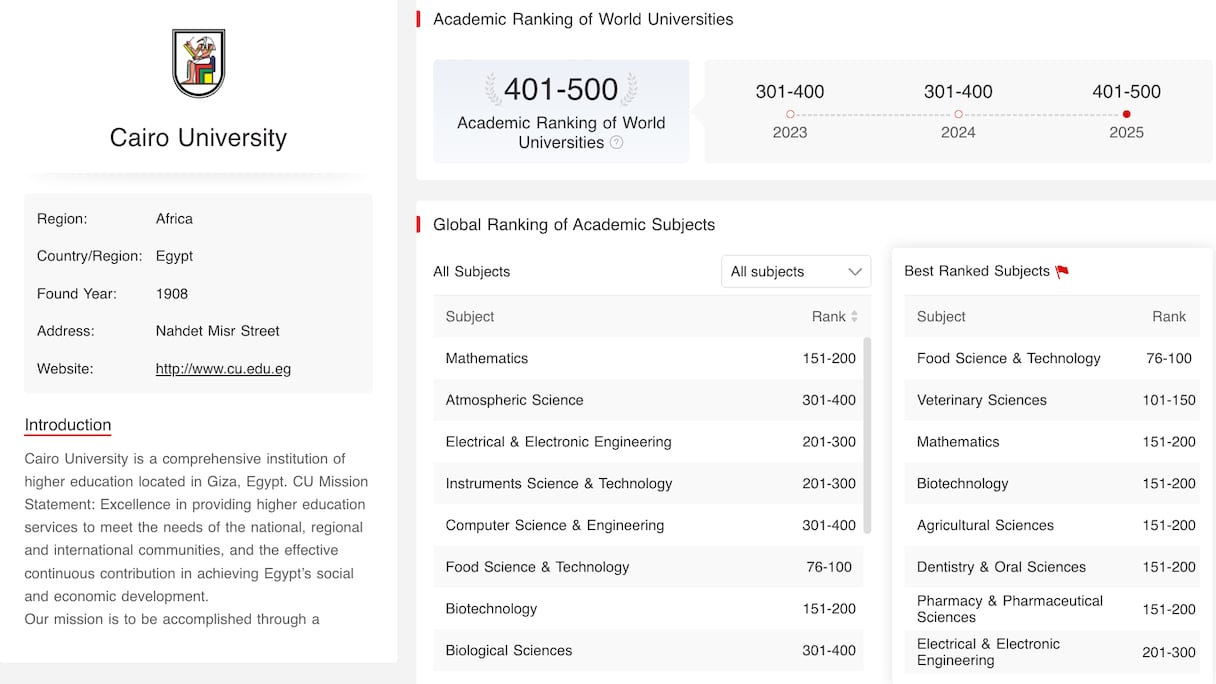 | 9e | Ain Shams University | Egypte | 601-700 |