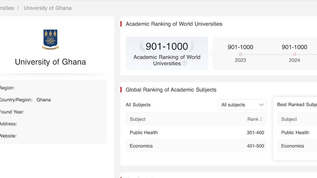| 16e | University of Ghana | Ghana | 901-1000 |