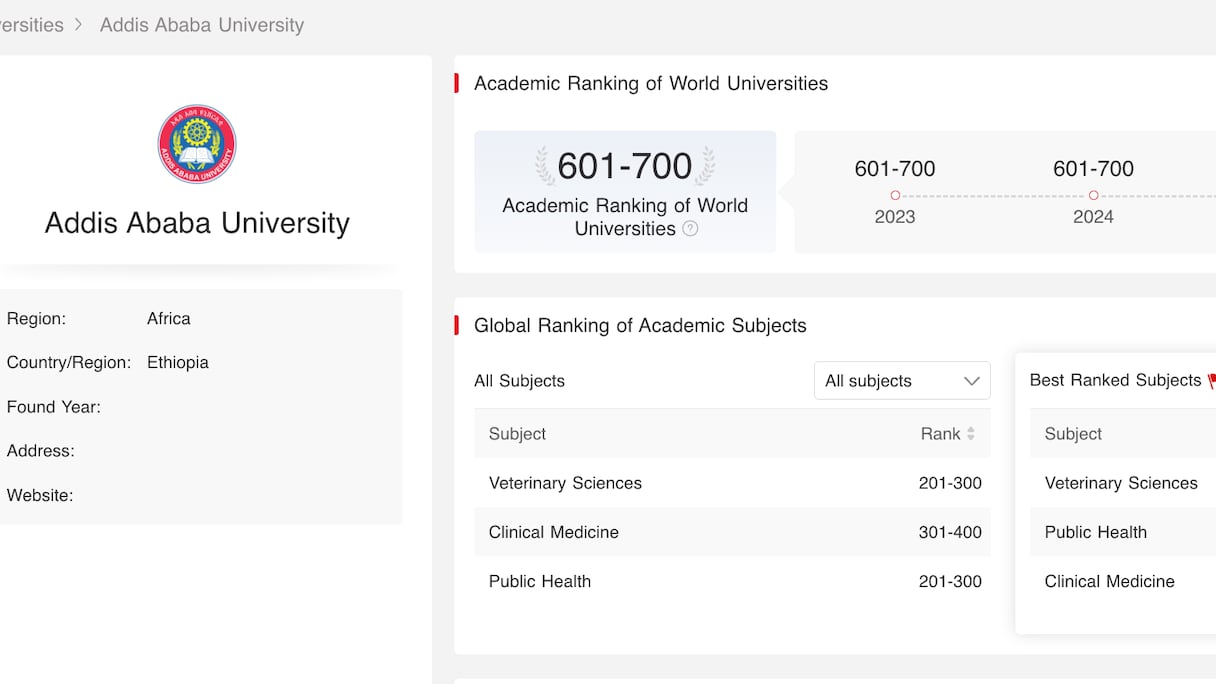 | 8e | Addis Ababa University | Ethiopie | 601-700 |