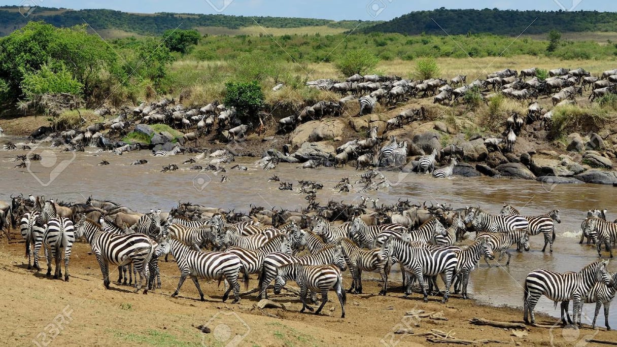 La grande migration des millions de gnous, zèbres, gazelles et autres prédateurs du parc national du Serengeti en Tanzanie à la réserve nationale de Maasai Mara au Kenya constitue la plus grande attraction touristique d'animaux vivants au monde.. DR