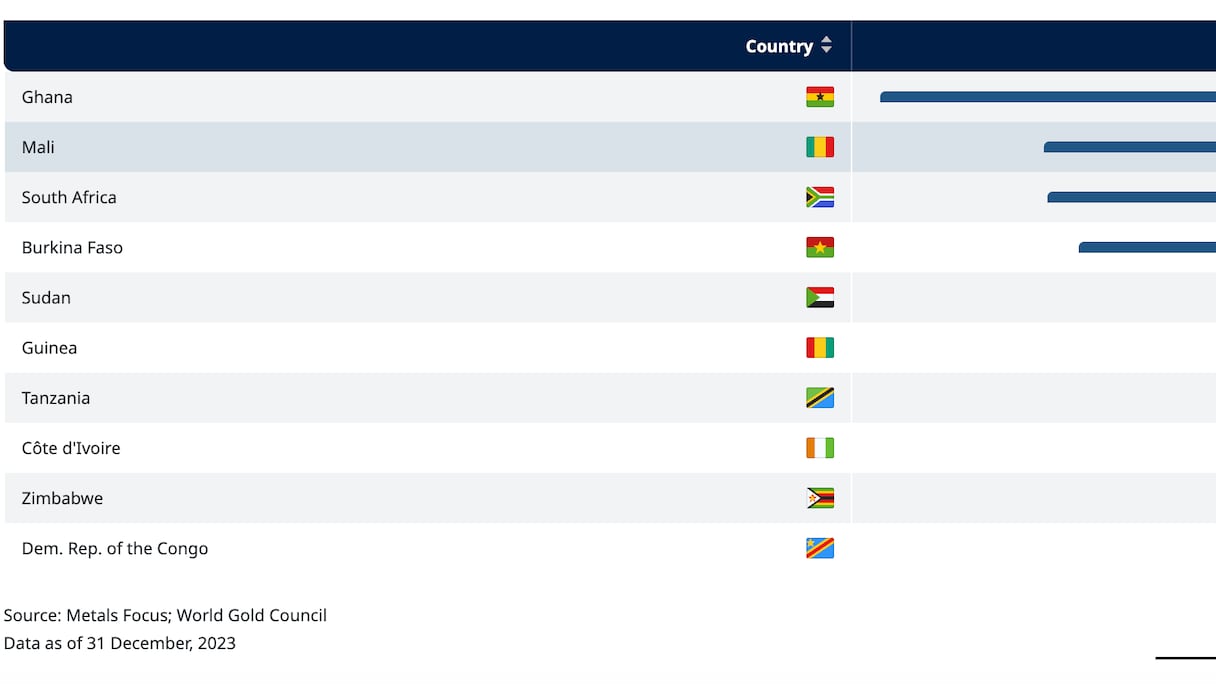 Selon les données du World Gold Council de 2023, quinze pays africains figurent parmi les 45 plus grands producteurs d’or du monde, un classement dominé par la Chine (328,2 tonnes), la Russie (321,8 tonnes), l’Australie (293,8 tonnes), le Canada (191,9 tonnes) et les États-Unis (166,7 tonnes). La première nation africaine, 6e rang mondial, est justement le Ghana avec une production de 135,10 tonnes.