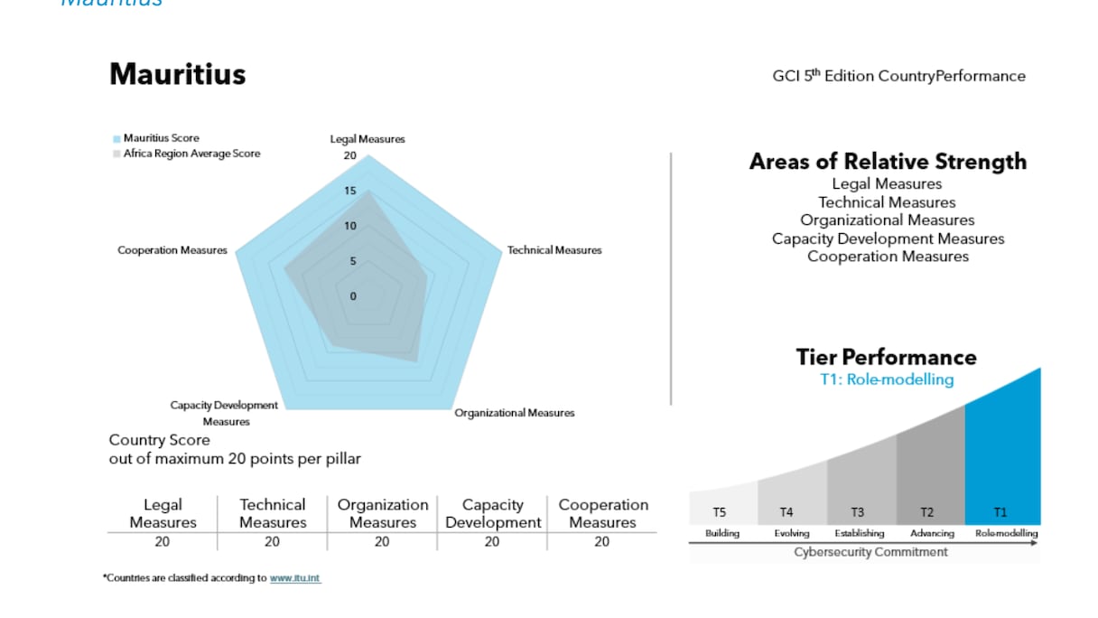Parmi ces 46 pays les mieux outillés figurent 7 pays africains. D’après le classement GCI 2023-2024, l’Égypte et Maurice sont les pays africains les mieux outillés avec des scores parfaits de 100 points, obtenus au niveau des cinq piliers, à raison de 20/20 pour chaque pilier.