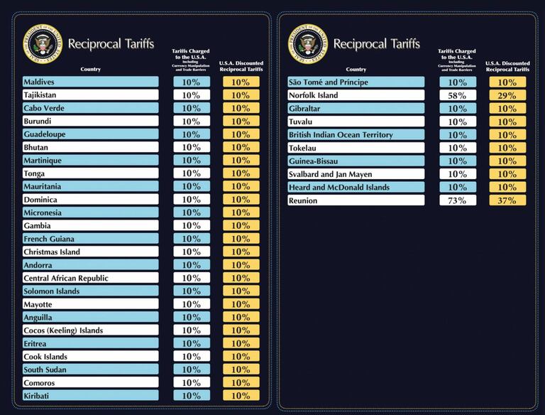 Tableau 2 des droits de douane annoncés par les Etats-Unis le 2 avril 2025.