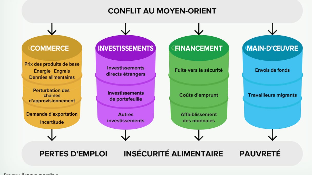 La guerre au Moyen-Orient opposant les États-Unis et Israël à l’Iran a eu des impacts négatifs sur l’économie mondiale en perturbant les chaînes d’approvisionnement mondiales, notamment pour les hydrocarbures après le blocus du détroit d’Ormuz. «Le conflit au Moyen-Orient entraîne une double crise énergétique et alimentaire pour les pays africains, à un moment où les gouvernements sont déjà confrontés à des obligations croissantes liées au service de la dette, ce qui limité leur capacité à faire face à la crise ou à financer leurs priorités en matière de développement», souligne le rapport de la Banque mondiale d’avril 2026 intitulé: «État des lieux de l’économie africaine: faire aboutir les politiques industrielles en Afrique».