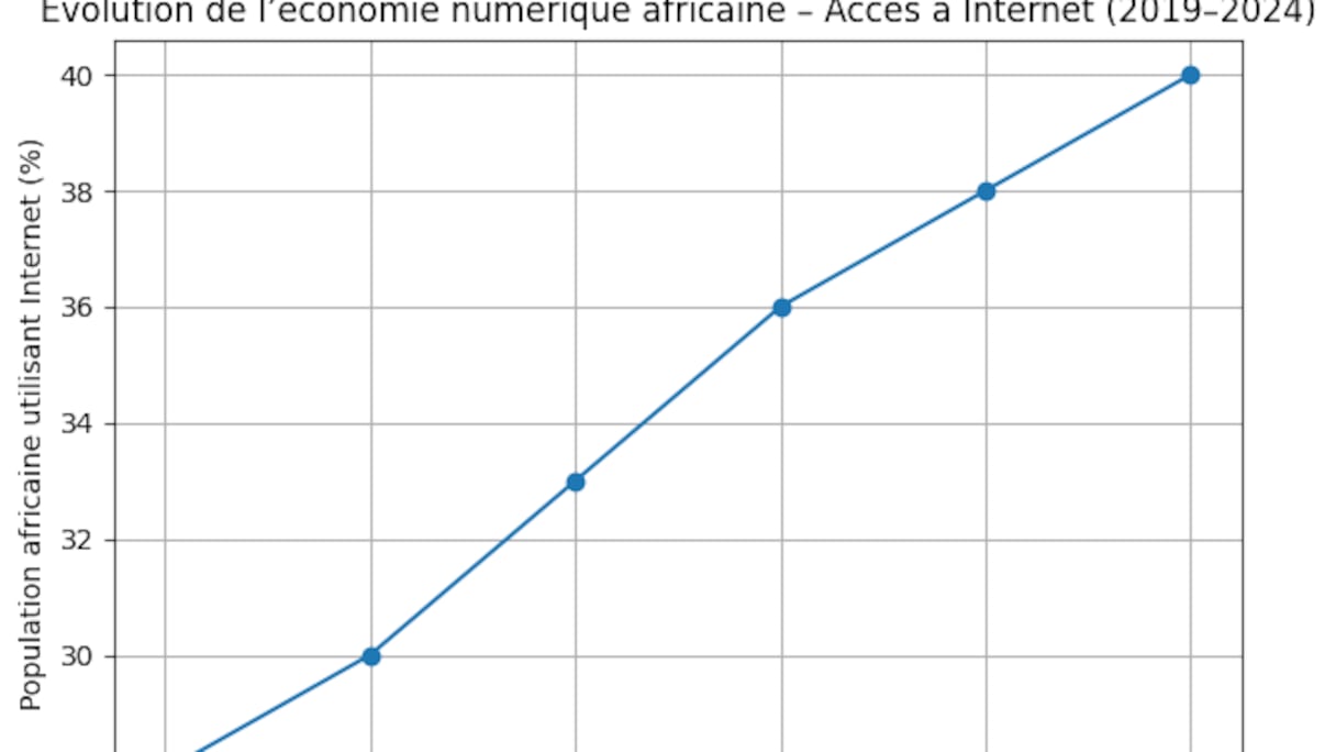 L’économie numérique africaine connaît, depuis les années 2020, une phase d’expansion sans précédent. Selon les données combinées de l’Union internationale des télécommunications citées par BEI (Banque européenne de développement) et de la Banque mondiale, la proportion de la population africaine ayant accès à Internet est passée d’environ 28% en 2019 à près de 38% en 2023, soit plus de 500 millions d’utilisateurs connectés dès 2022. Cette progression rapide, principalement tirée par l’Internet mobile et la diffusion des smartphones à bas coût, transforme en profondeur les structures économiques du continent.