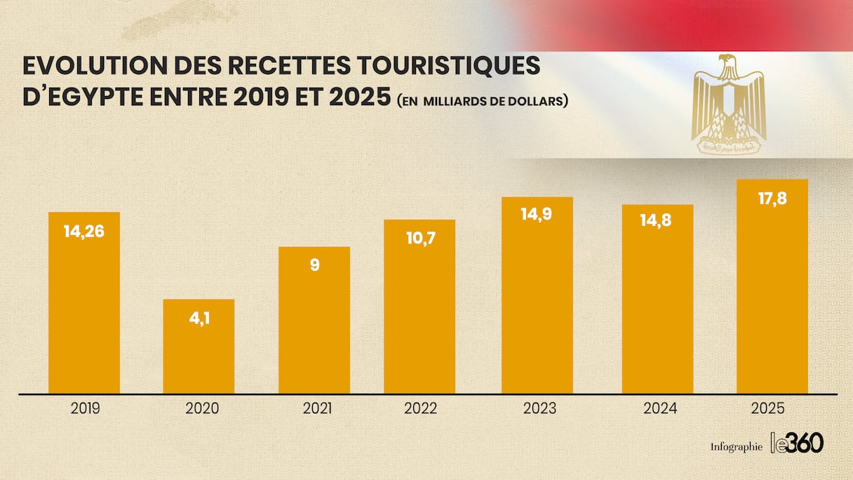 Par ailleurs, si le Maroc (19,8 millions de touristes) a conservé son titre de première destination touristique africaine devant l’Égypte (19 millions de visiteurs) en 2025, c’est pourtant le pays des Pharaons qui maintient la première place en matière de revenus de voyages avec 17,8 milliards de dollars de recettes, contre 14,70 milliards de dollars pour le Maroc.